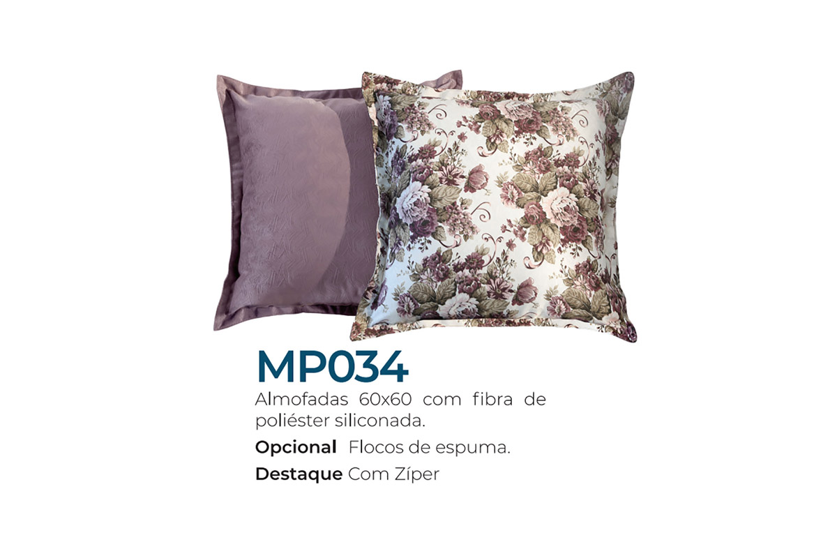 Almofadas 60 x 60 com fibra de poliéster siliconada.