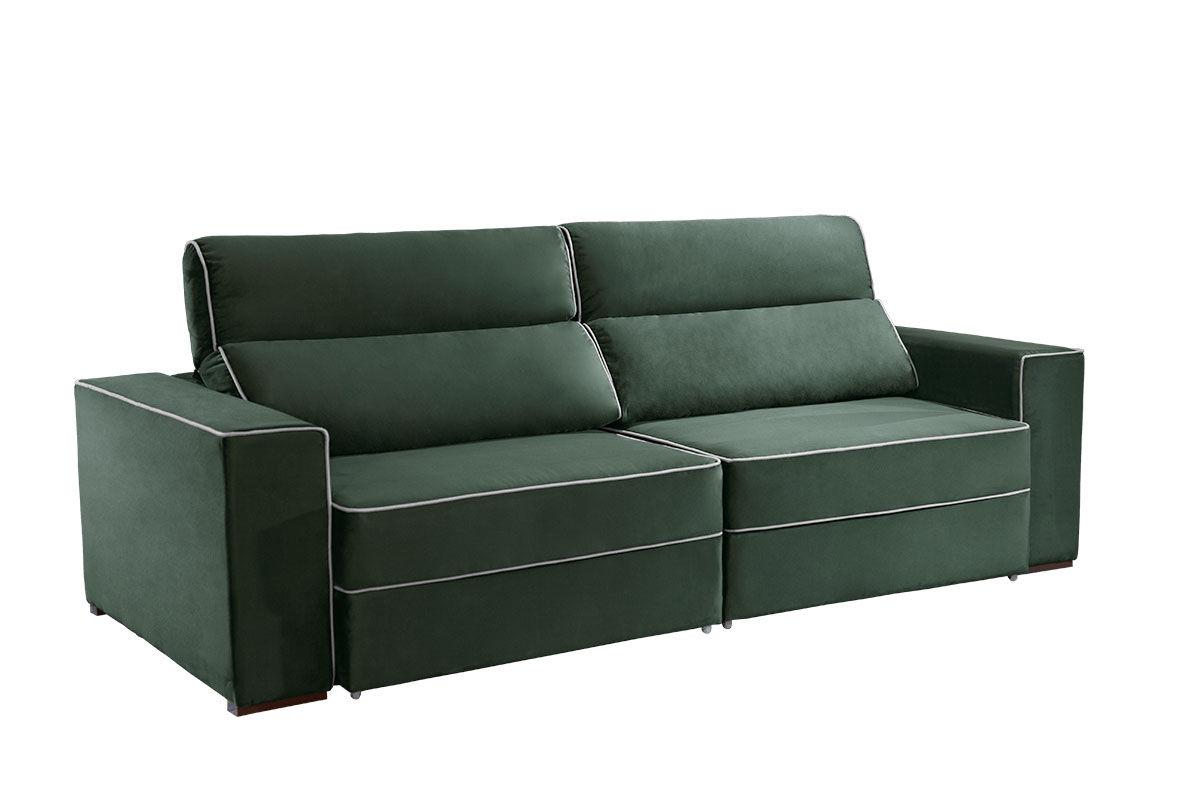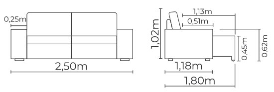 Reclinável e removível com almofadas fixas com fibra de poliéster siliconada.