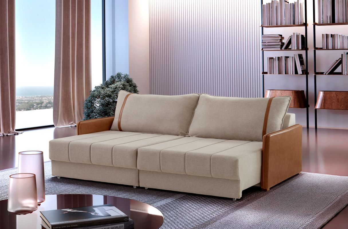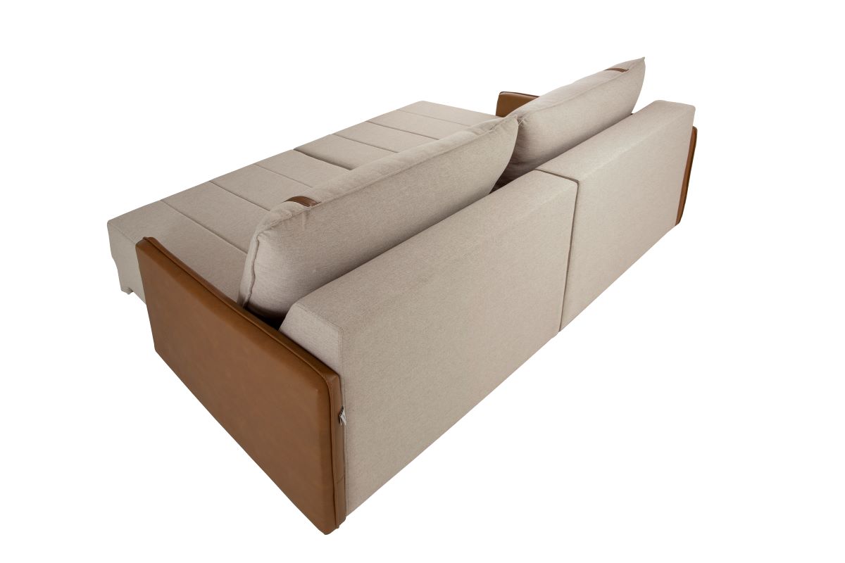 Retrátil com mola espiral, percinta elástica, espuma D28 com manta de poliéster siliconada.